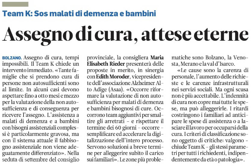 Dal quotidiano "Alto Adige” del 03/09/2025